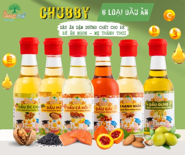 Dầu Ăn Dặm Cho Bé CHUBBY Date 2025 Cho Trẻ Trên 6 Tháng Tuổi ,Giúp Bổ Não,Tăng Chiều Cao Cho Bé,Dung Tích 60ml và 150ml
